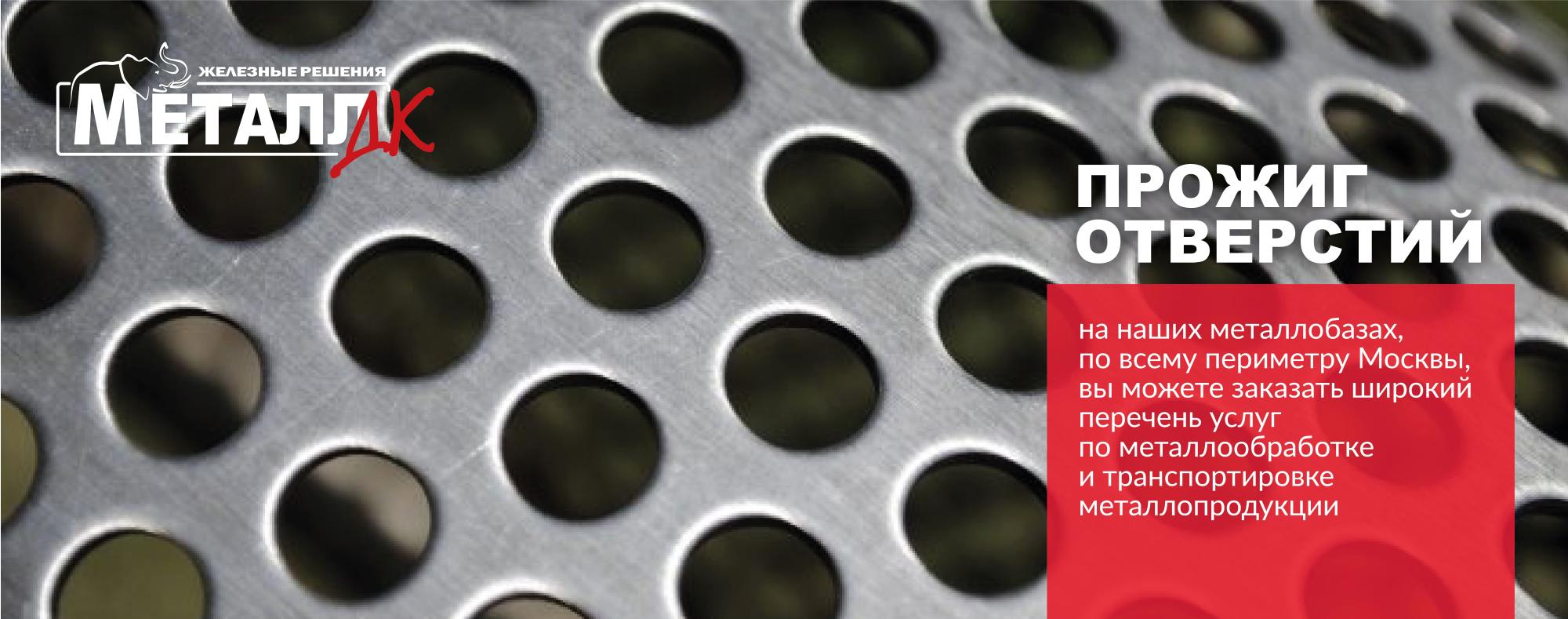 Сотрудники Металл ДК выполняют на заказ прожиг отверстий в металле. При проведении работ специалисты используют газовое оборудование. Услуга предоставляется на складах компании платно. Цена прожига зависит от диаметра отверстия и толщины металла.